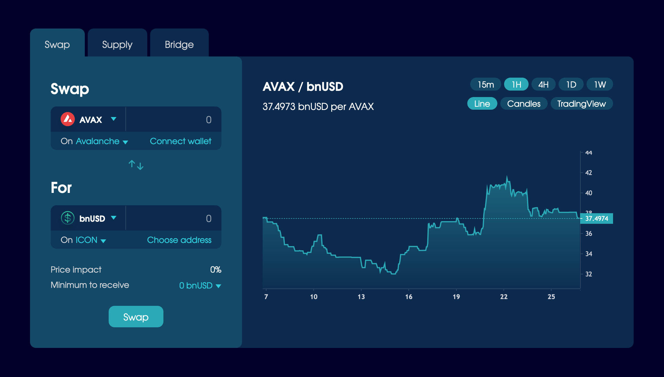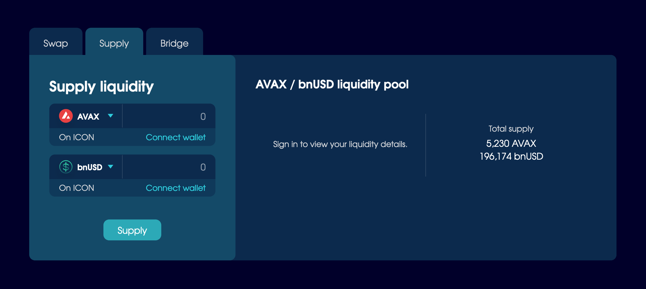 Thanks to ICON’s efforts, the AVAX/bnUSD liquidity pool has ~$400k ready to supply your trades from launch.
