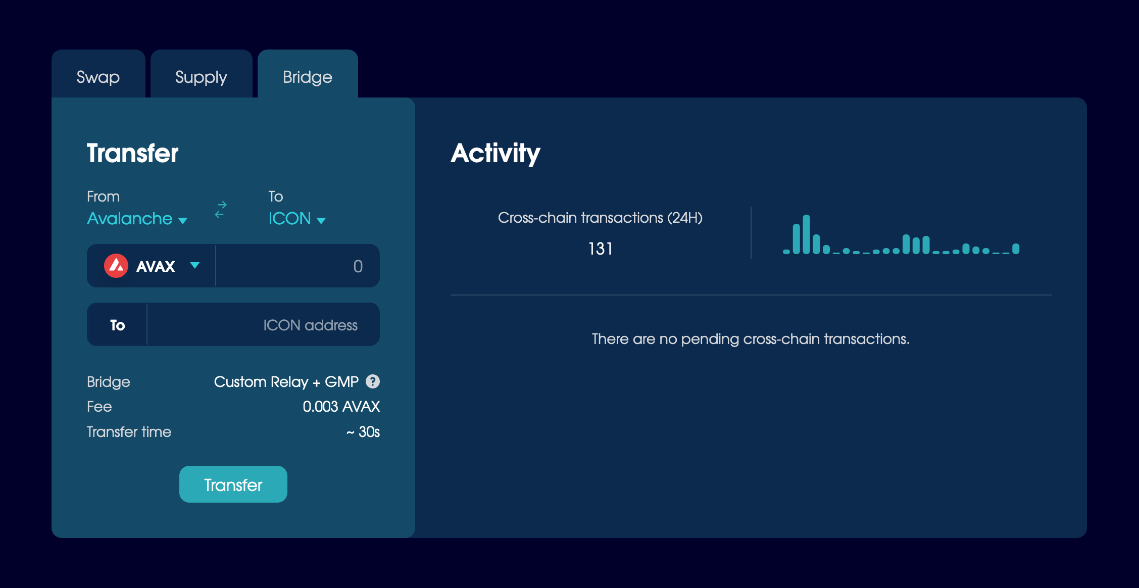 You can use Balanced on Avalanche to swap between assets on different chains, and transfer crypto to a supported blockchain.