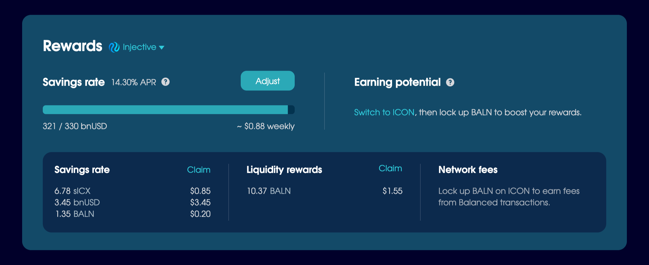 Visit app.balanced.network to supply liquidity, invest bnUSD, and earn rewards on your favourite blockchains.