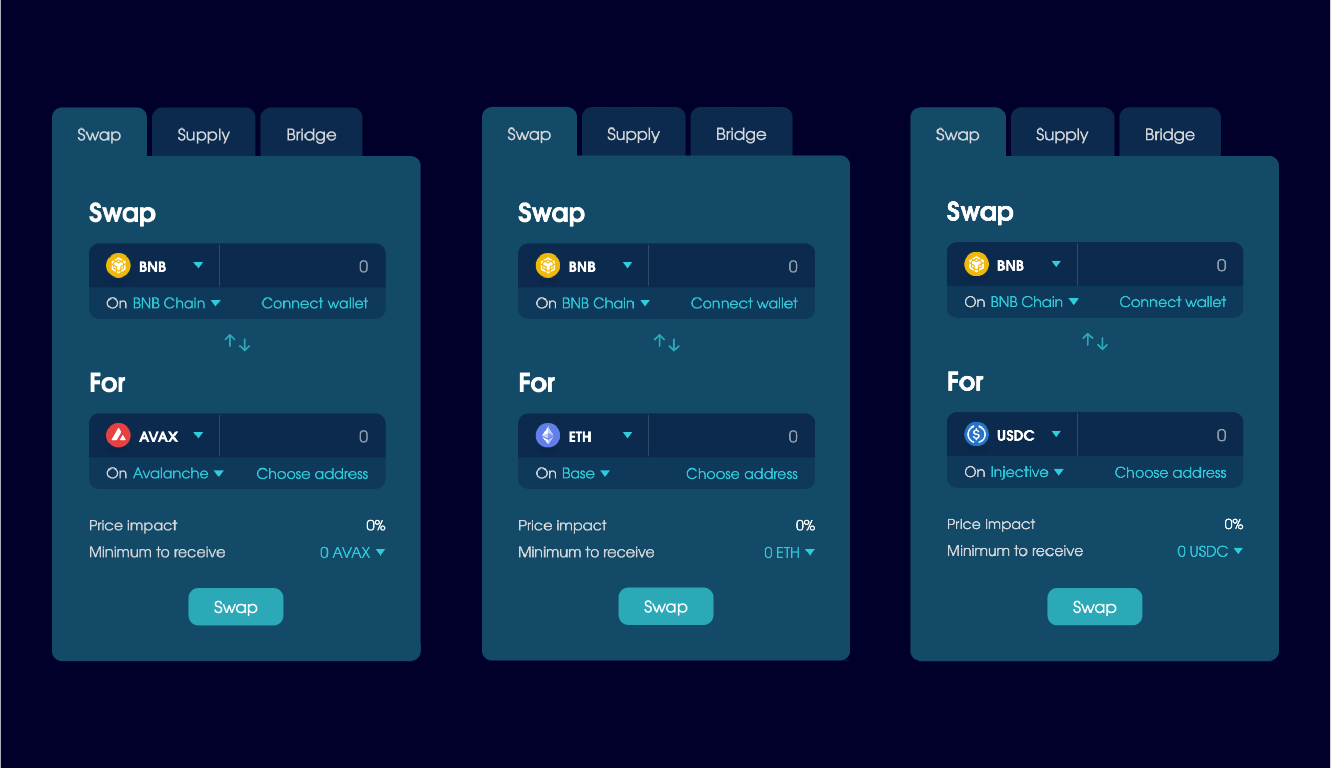 - Choose which blockchains to send and receive on.
