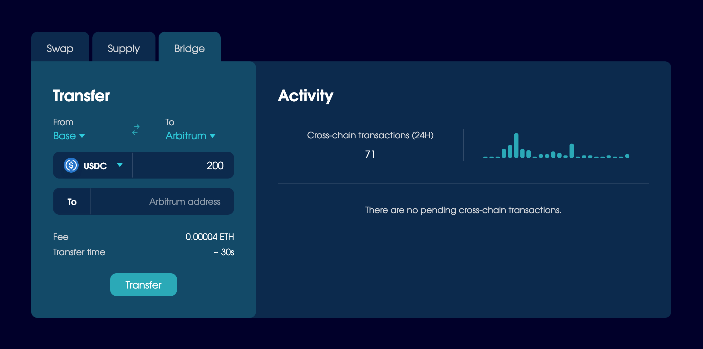The amount of USDC available on each supported chain depends on how many people have used it to swap or transfer. If you want to transfer a large amount, you may notice limitations on specific blockchains.