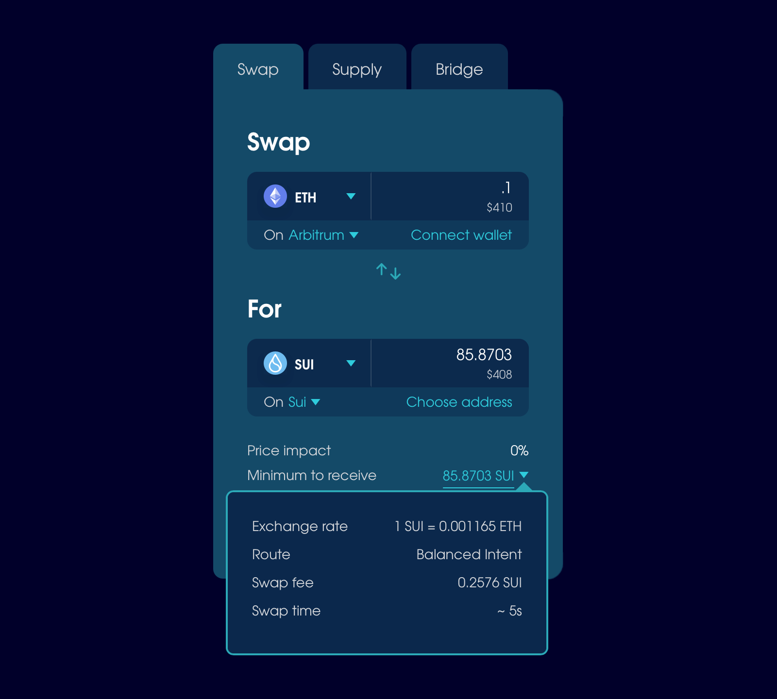 To experience the power of Balanced’s intent-based trading, visit app.balanced.network/trade and swap between SUI and Arbitrum ETH.