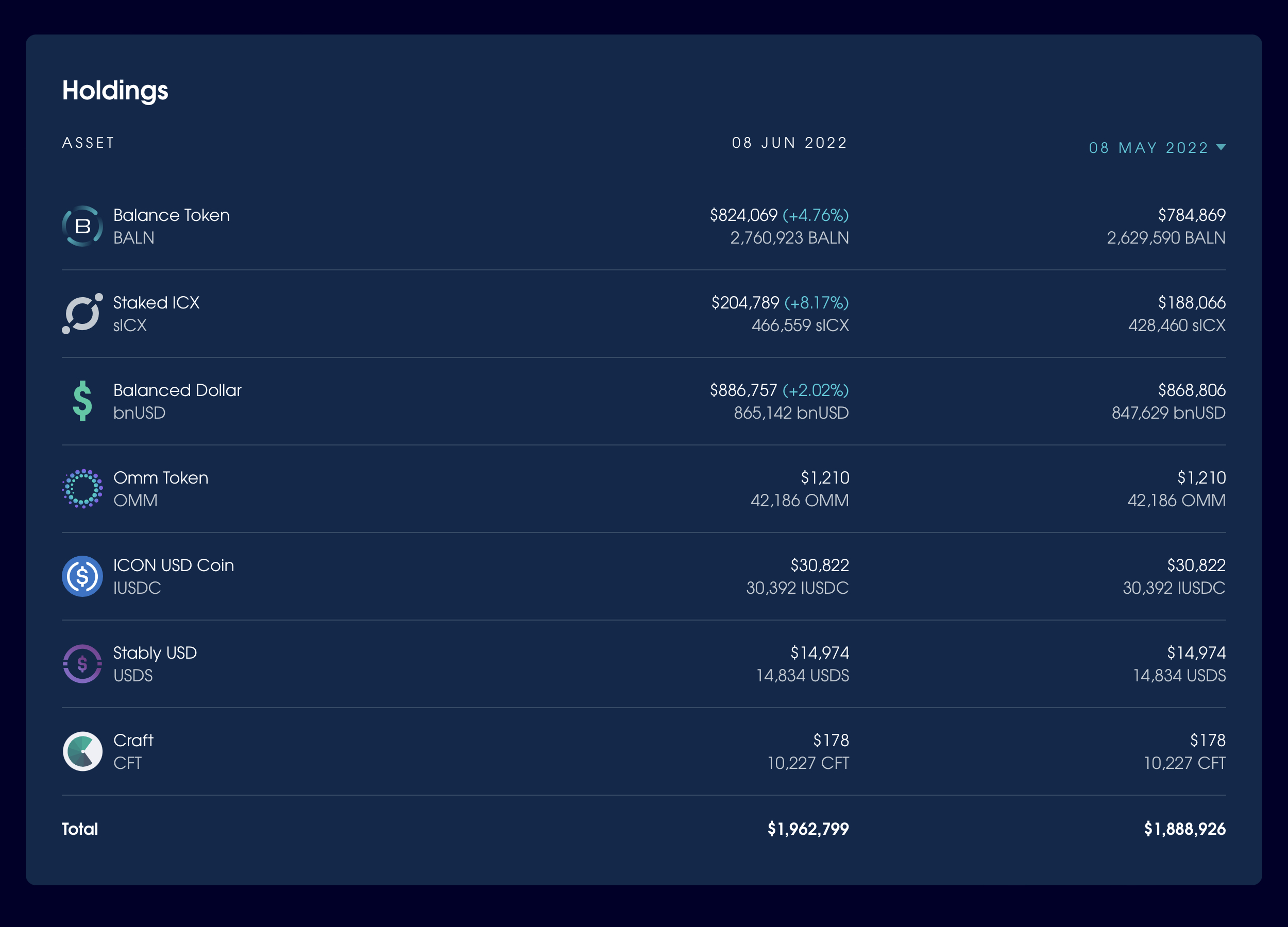 The DAO Fund increased by $73,873 โ a 3.91% gain โ to leave a total balance of $1,962,799 based on current market prices.