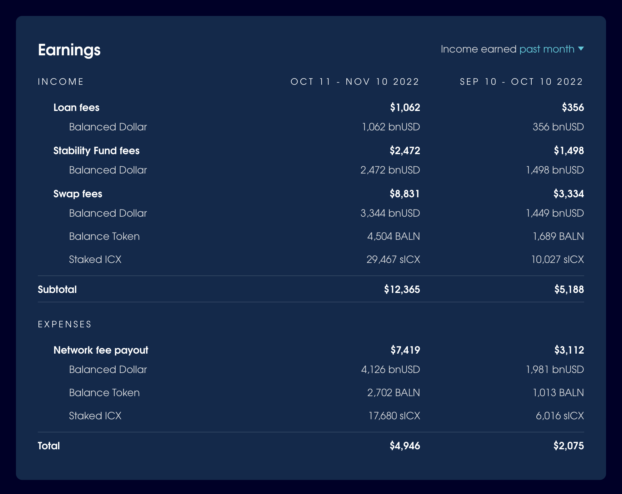 In the month from 11 October – 10 November, Balanced earned $12,365 from fees: