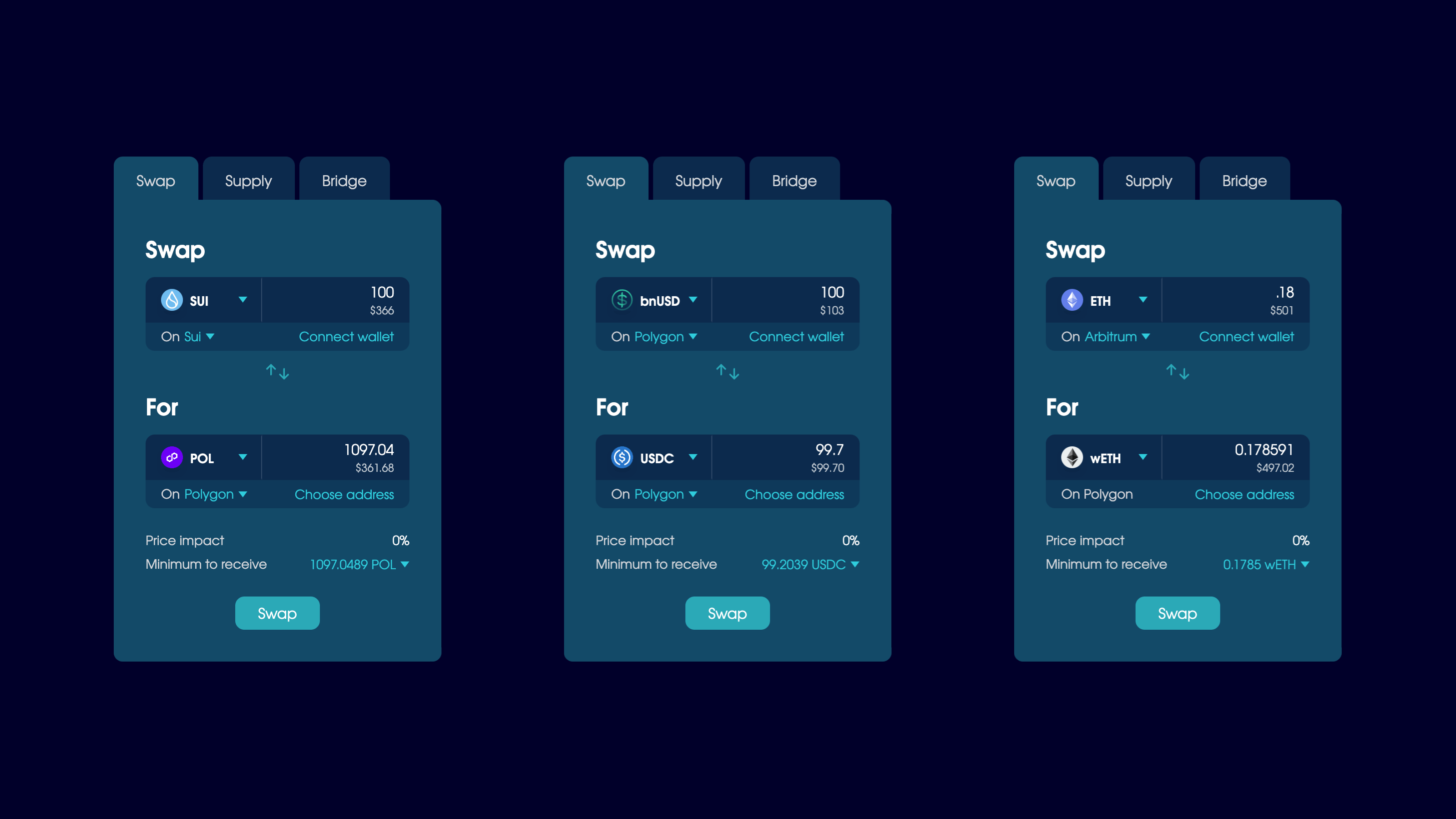 The Polygon connection also supports BALN, bnUSD, and sICX, with more tokens on the way as we continue to enhance the trading experience through intent-based trades.
