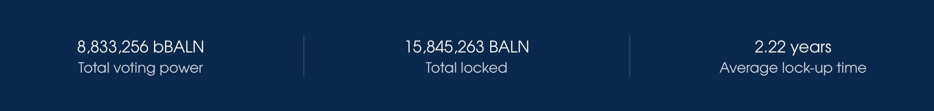 15,845,263 BALN have been locked in 890 wallets. There’s a total of 8,833,256 bBALN, giving an average lock-up time of 2.22 years.