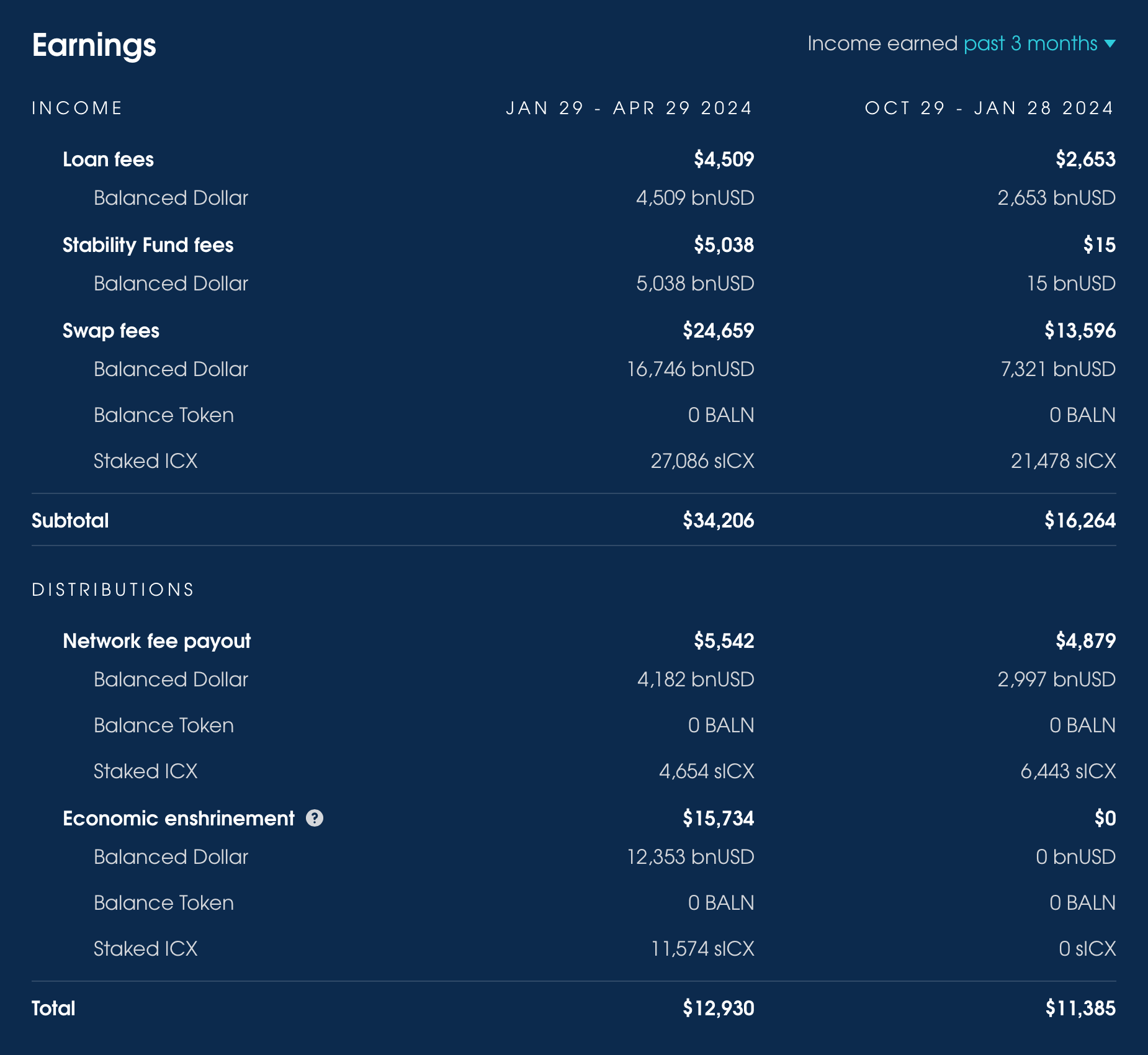 Over the last 3 months, Balanced earned $34,222 from fees: