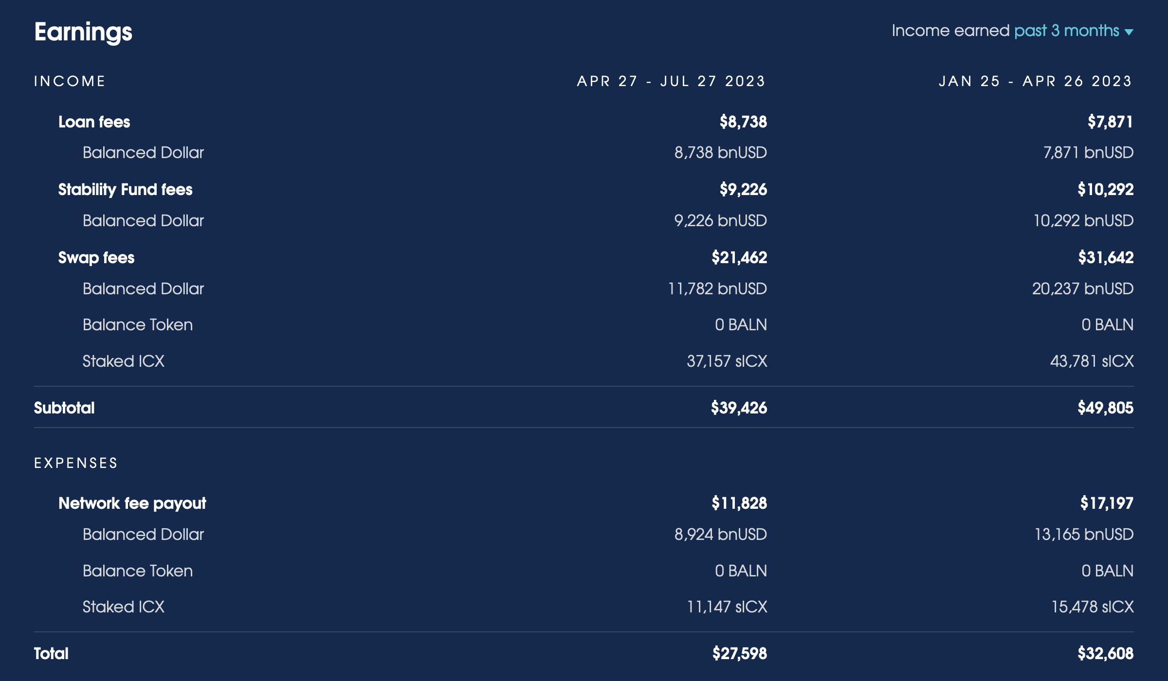 Over the last 3 months, Balanced earned $39,426 from fees: