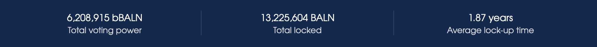 13,225,604 BALN have been locked in 1,004 wallets. There’s a total of 6,208,915 bBALN, giving an average lock-up time of 1.87 years.