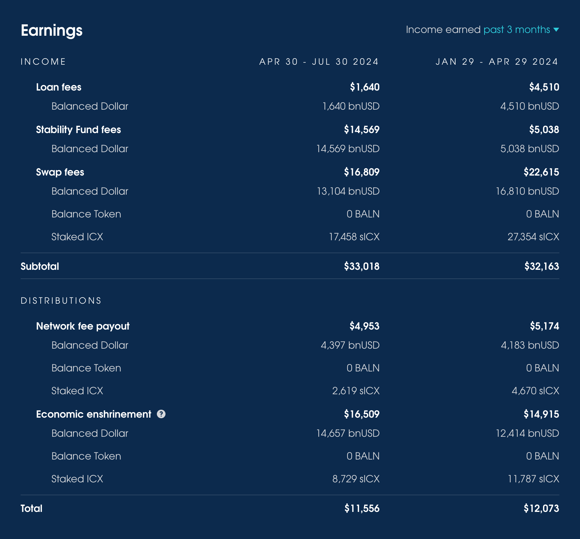 Over the last 3 months, Balanced earned $33,018 from fees: