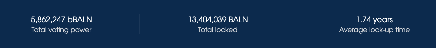 13,404,039 BALN have been locked in 996 wallets. There’s a total of 5,862,247 bBALN, giving an average lock-up time of 1.74 years.