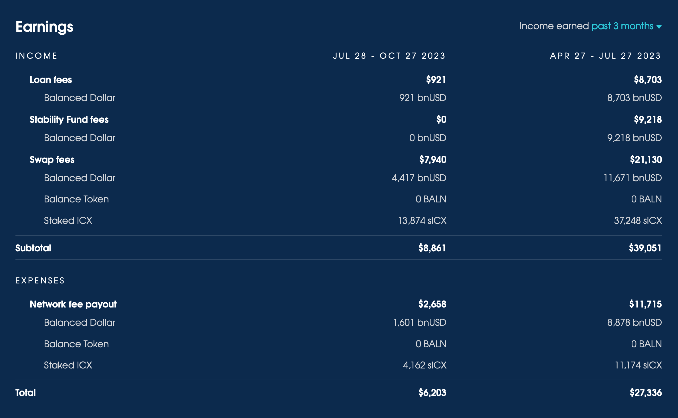 Over the last 3 months, Balanced earned $8,861 from fees: