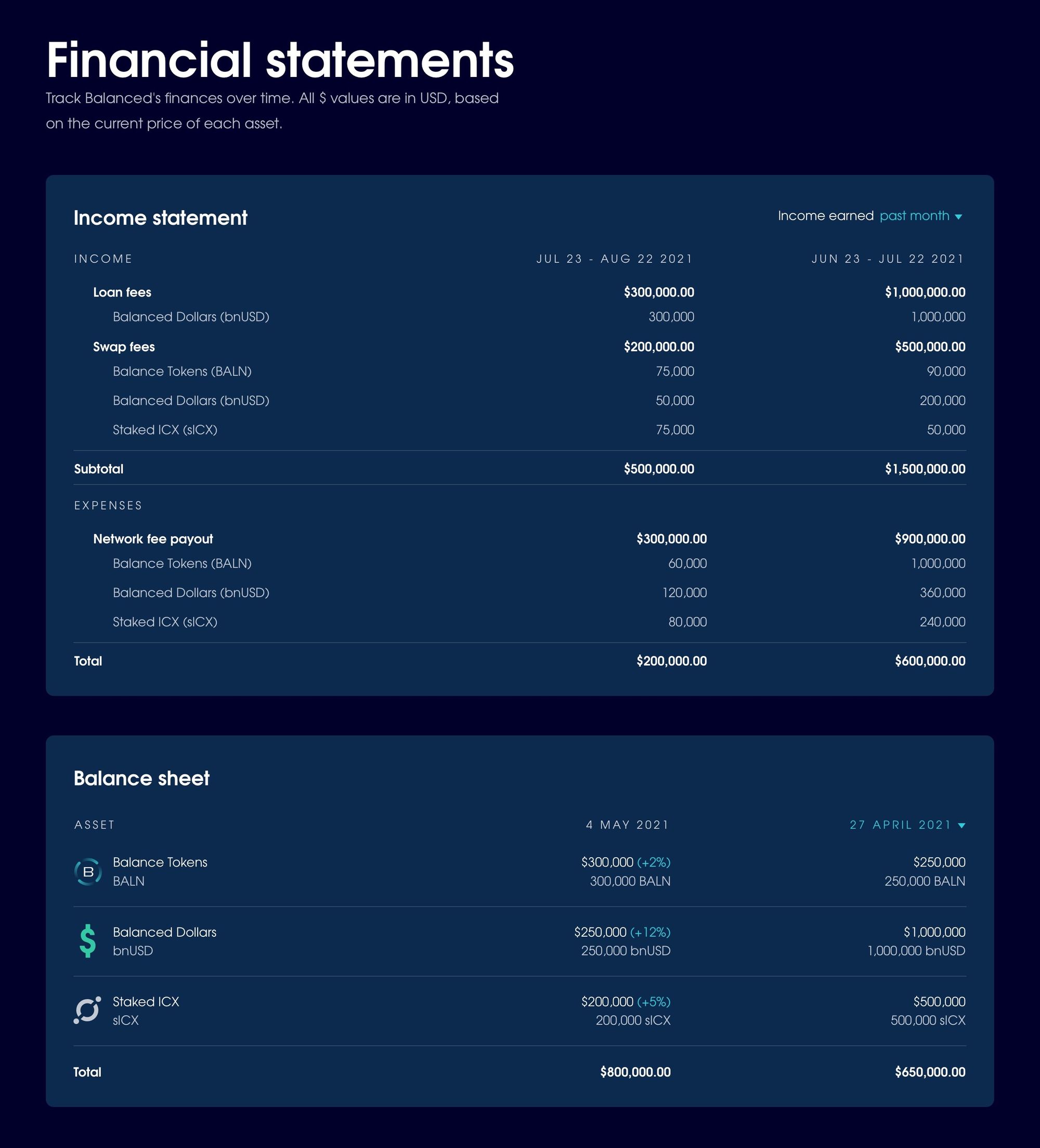 As we’ve seen from the 4 votes held over the past month, the Balanced community is already highly engaged in governance. To help them make even more informed decisions, we decided to open the books and create an adjustable income statement and balance sheet: